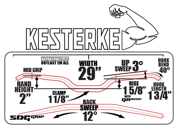 The Kesterke Signature bar is an oversized handlebar, measuring 1 1/8" at the clamping area. Verifying fit is your responsibility.
